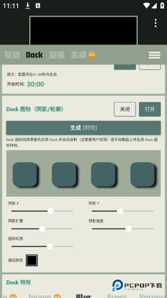 4.在【dock】包含了不同特效及相关参数可以自由选择设置。