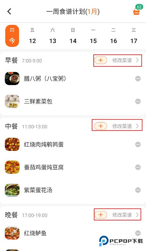 2、进入之后,用户可以点击右边内的修改菜谱,将系统定好的菜谱改为自己喜欢的菜品。
