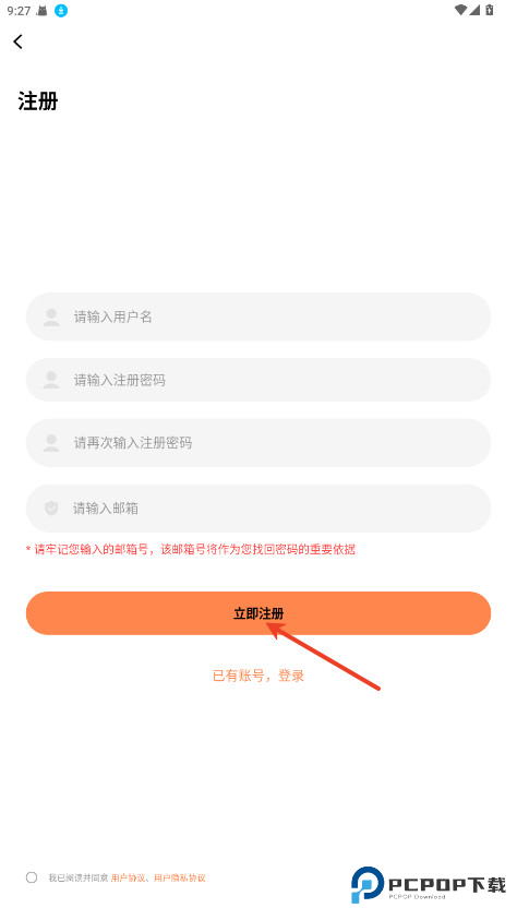 3.输入自定义用户名,密码和邮箱号,点击【立即注册】就可以了。