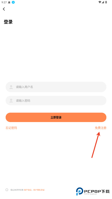 2.有账号可直接输入用户名以及密码登录。没账户也可在线注册。点击【免费注册】。