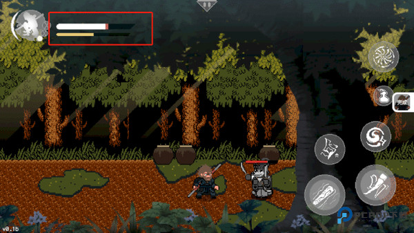 3、左上角为角色的血量和能量,当玩家使用技能就会消耗能量,在战斗时玩家需时刻注意躲避敌人的攻击;