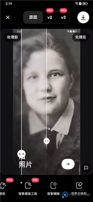 1、可以将旧相片和低质量相片增强到高明晰度。