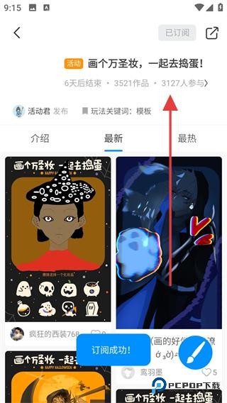 4、订阅成功后在活动详情页查看最新参与作品,了解其他用户的创作内容,激发自身的创作灵感,准备参与活动创作。