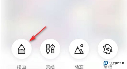 1、打开熊猫绘画正版后,在界面中点击下方中间的画笔图标,如下图所示。