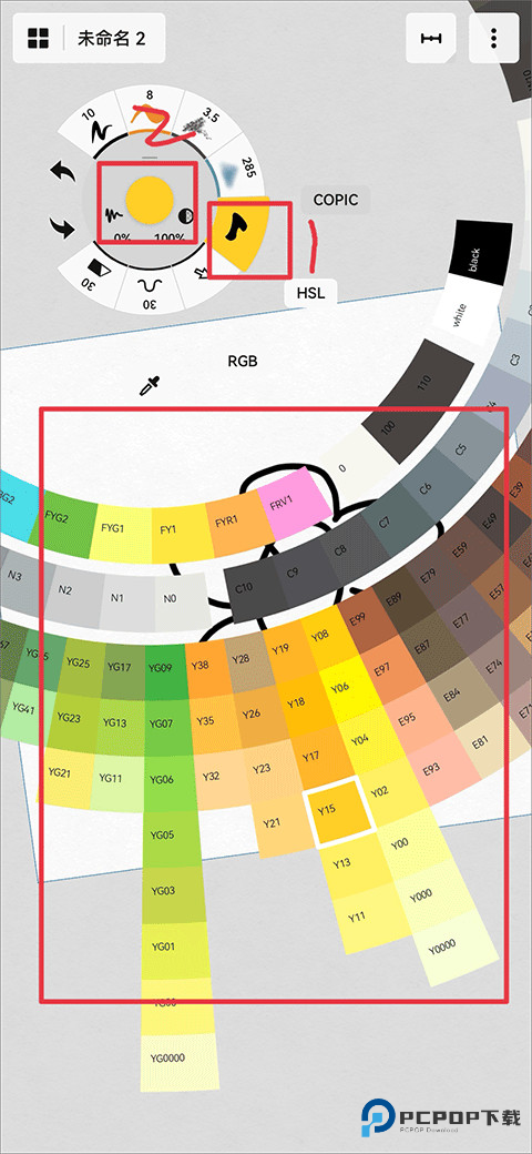 1、在绘画界面中,首先点击左上角工具中的填充功能,点击后再次点击中间圆心进行颜色的选择