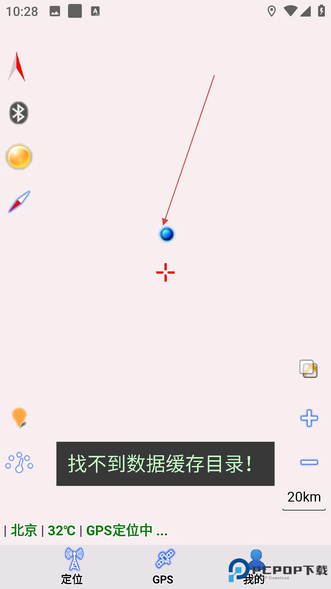 3、点击底部GPS选项,进入定位页面,查看蓝色圆点标记的位置,了解当前定位状态。