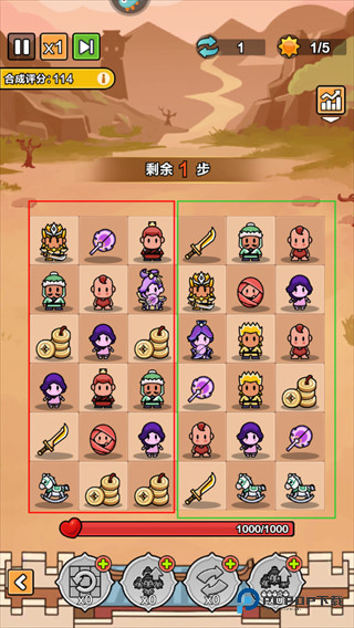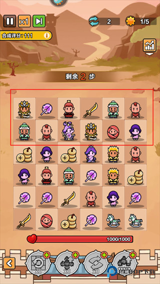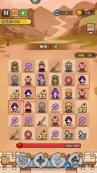 首先大家要知道的是:这款游戏如果想要合成高阶武将一定要让消除的时候达到4次或者5次以上的消除,这样才能够合成高阶武将。所以,我们在消除的时候要众览全局,尽量把所有的同样类型的旗子放到一起去消除。这样我们才能够拥有高阶武将的机会,而对战的过程中如果没有高阶武将是没有办法阻挡敌人的步伐的。