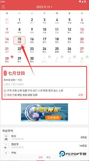 3、继续向下滑动屏幕,还能浏览相邻日期的节日与节气相关安排。