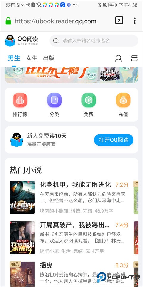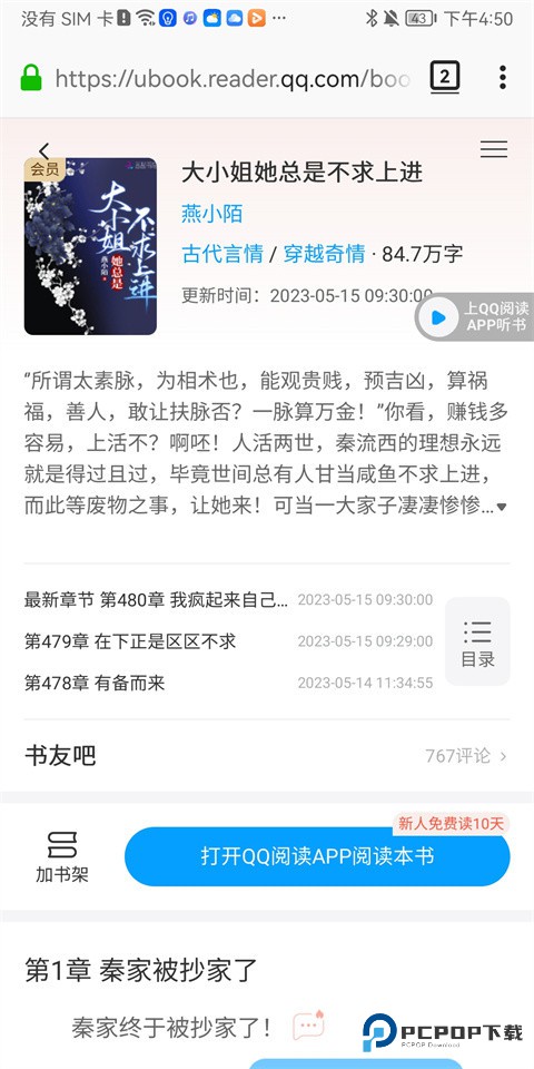 4、然后选择你想看的小说进入,点击下方打开QQ阅读进行下载;