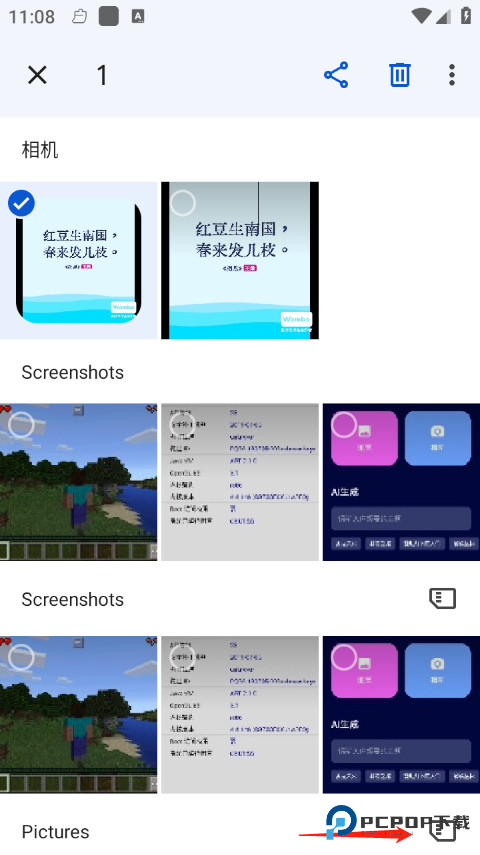 3、进入分享板块,选择你想要分享照片的人和想要分享的照片即可。