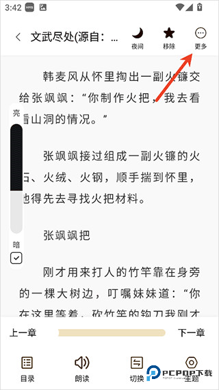 1、进入小说的阅读界面双击界面空白位置,然后点击右上角的【更多】