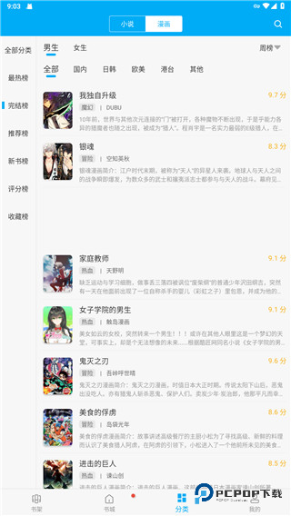 3、通过使用分类可以更加快速的寻找到你想要看的漫画和小说。