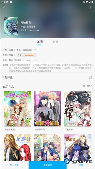 2、找到想要看的漫画和小说之后一键添加到书架即可,当然也可以在线免费阅读和先缓存之后再离线阅读;