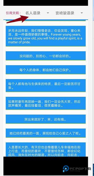 6、点击主页的分号按钮,可以加入更多名言名句。
