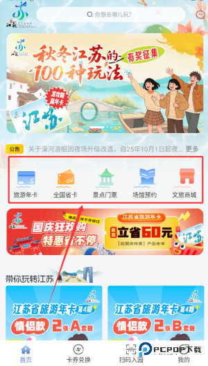 2、首页提供年度畅游卡及省份通票等特色服务的在线办理入口。