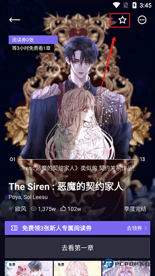 3、然后进入到作品的页面,点击五角星即可订阅。
