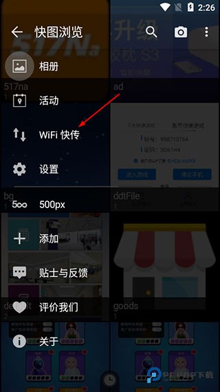 1、首先打开软件后,找到左边的wifi快传选项;