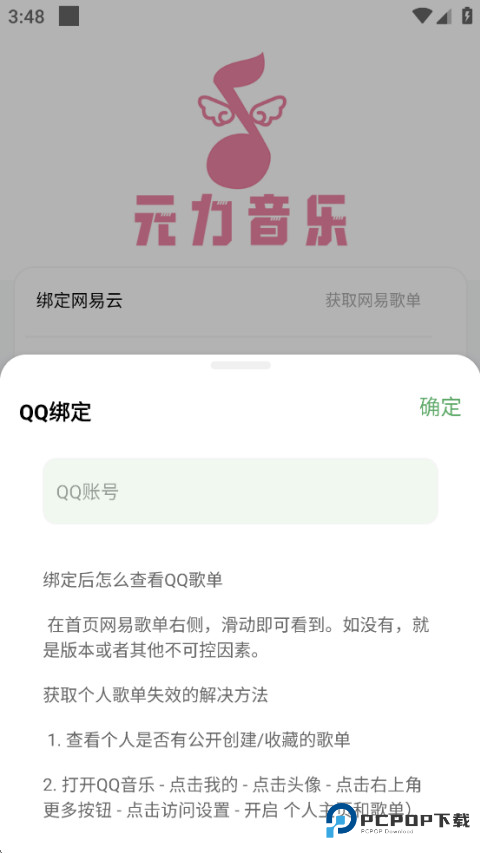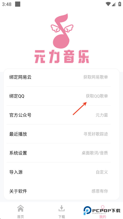 2、输入qq号进行绑定即可,然后在首页就可以点击qq音乐榜单了。