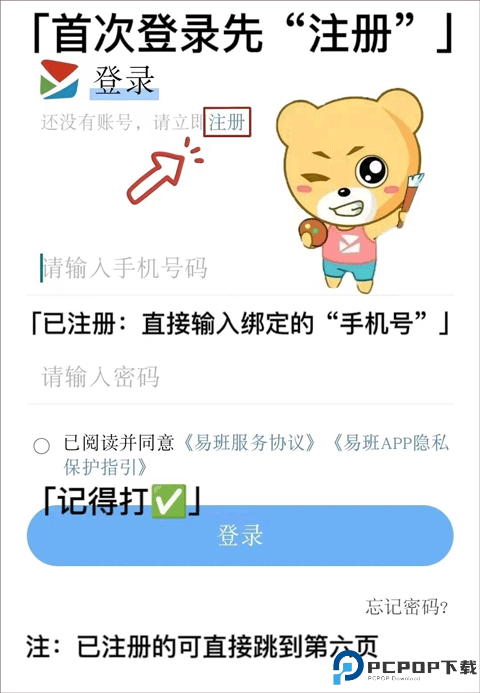 1、首先,打开易班学生服务平台app后,点击登录界面右上角"注册"按钮,注册易班账号。