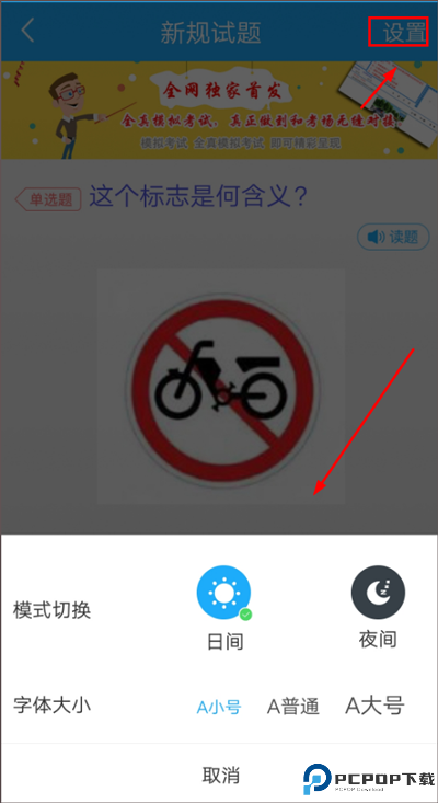 3、在模拟考试前,用户可点击下方图标位置,用于设置:字体,模式切换,来方便用户更好的操作