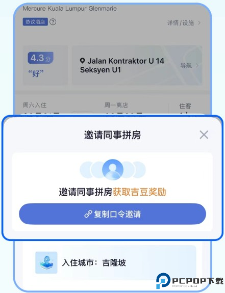 员工和同行同事海外出差预订酒店时,可选择同性别2人拼房同住,完成入住并在离店后将获得拼房奖励积分。