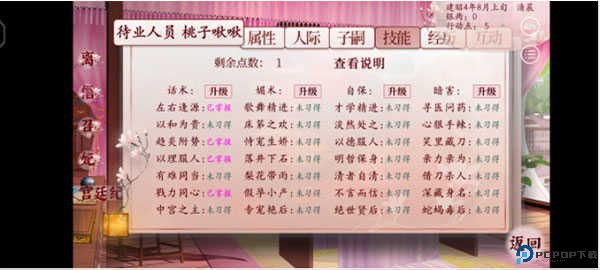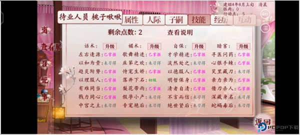 ④每次宴会被太后夸奖/向皇上敬酒获得3个技能点。