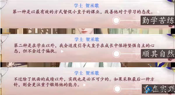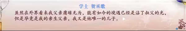 注:之后贺丞歌有个剧情,需要被教的孩子学识达到80才能触发。没达到的建议先选“勤学苦练”。