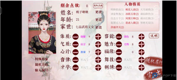 此加点易留寝,后期生娃满属性,开局后非常容易获得的心计、福源和才艺等不必浪费点数