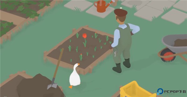 4、园丁看到花被拔出来后很着急,会将花重新栽到土里,玩家可以趁这个时候拿走他的帽子。