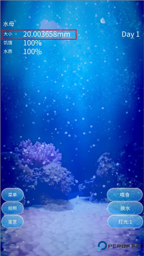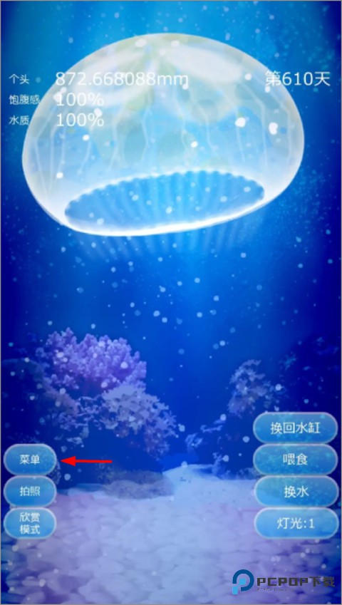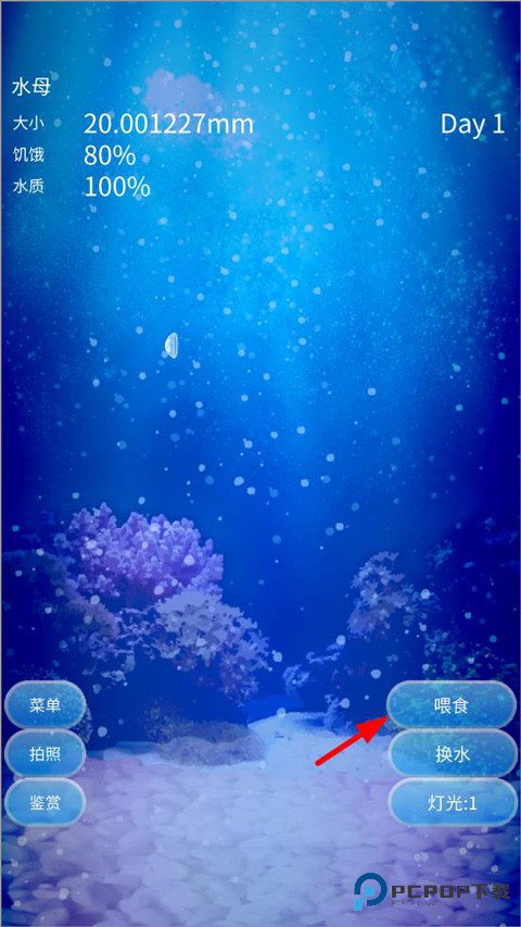 3、玩家通过持续给水母喂食和换水使其成长,此成长过程即为升级。水母长大后,玩家可以更换更大的水缸。