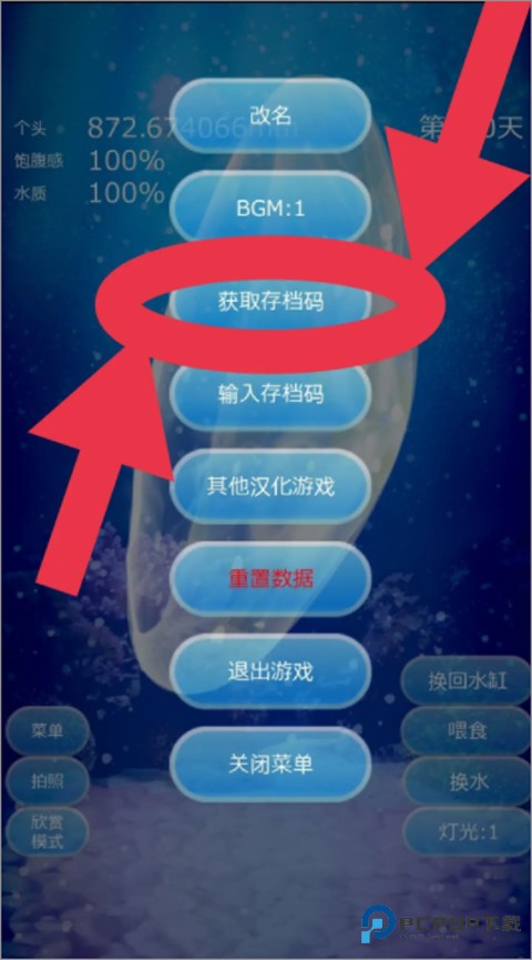 4、若需重置游戏时间,在游戏的功能列表中选择菜单,点击重置游戏选项。重置后游戏时间回到玩家开始饲养第一只水母的初始状态。