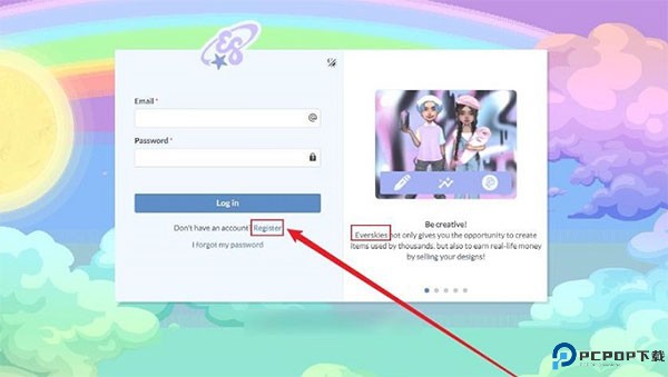 1、打开everskies官网“点击进入”,如图所示点击【Register】开始注册。