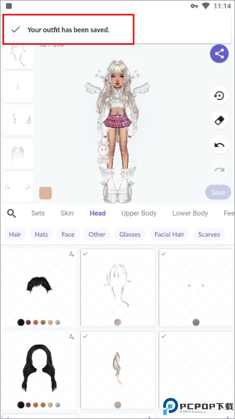 4、页面上方出现 “Your outfit has been saved” 提示,就代表保存成功。