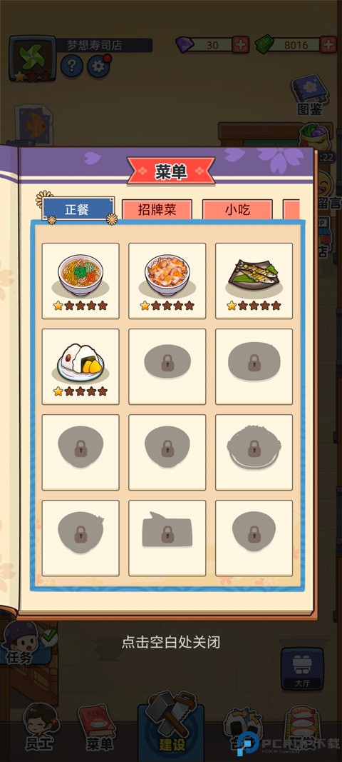 1、玩家将突然接手奶奶留给你的一间看上去有些破旧的寿司店,你需要去仔细的打扫,装修,让这个店运行起来。