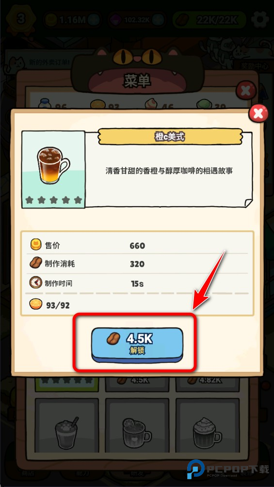 5.支付指定数量咖啡豆资源解锁配方,该咖啡制作方法立即生效于菜单栏