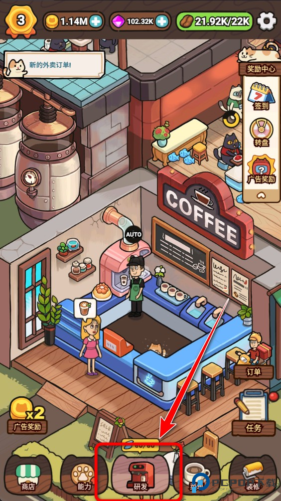 1.研发图标出现在咖啡可开发状态时立即点击该按钮