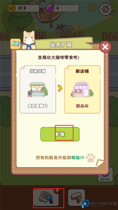6、当纸杯蛋糕工作台满级之后,玩家可以点击业务扩张按钮,将纸杯蛋糕升级为甜品站;
