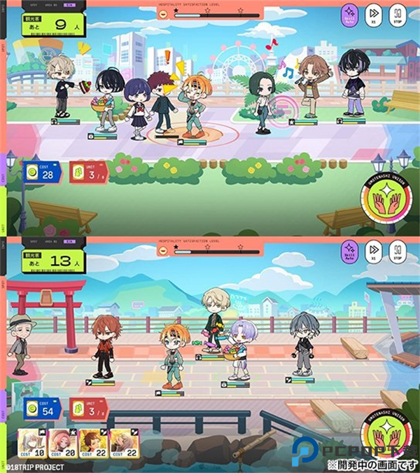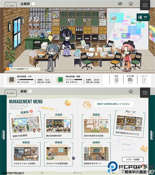 「经营」则可以编成轮班表,经过一定时间后入手观光指南书等育成道具。经营有分成各种部门,各部门的负责内容也不同。