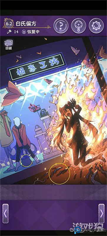 点击以下黄色区域获取故事碎片,红色区域发现隐藏怪异之手