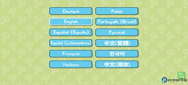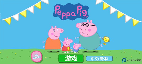 1、打开小猪佩奇运动会中文版,选择“简体中文”,点击右下角的对号。