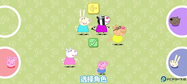 1、赛跑:选择自己喜欢的佩奇角色,通过点击跨越障碍。