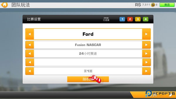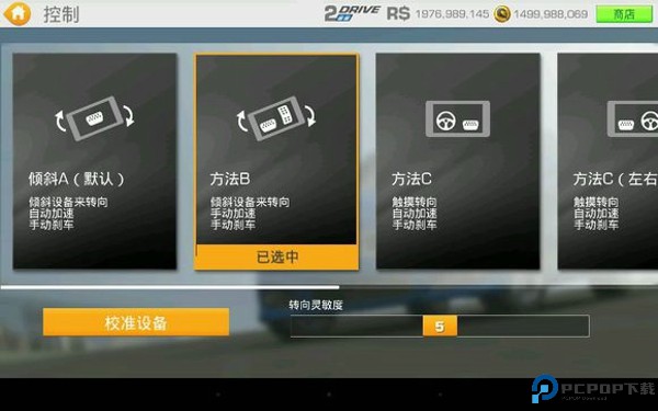2、游戏支持2种方式来控制赛车:重力感应和屏幕控制,其中又分为7种玩家个性化的操作方式。