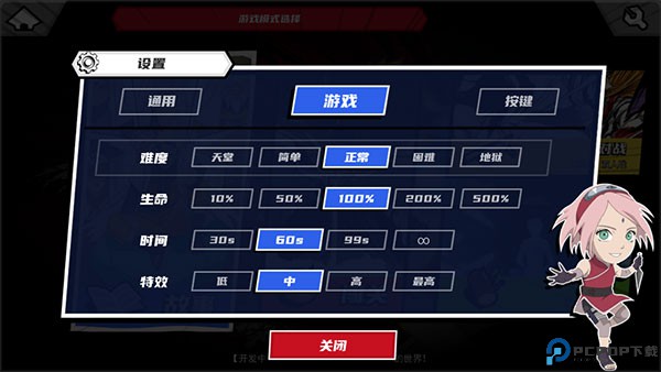 2、点击右上角的设置按钮,可以进行难度、生命、时间、特效等设置。