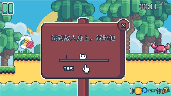 2、遇到敌人只要跳到怪物头顶便可将其消灭。