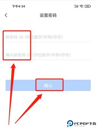4、进入设置密码界面,输入新密码、确认密码,点击确认