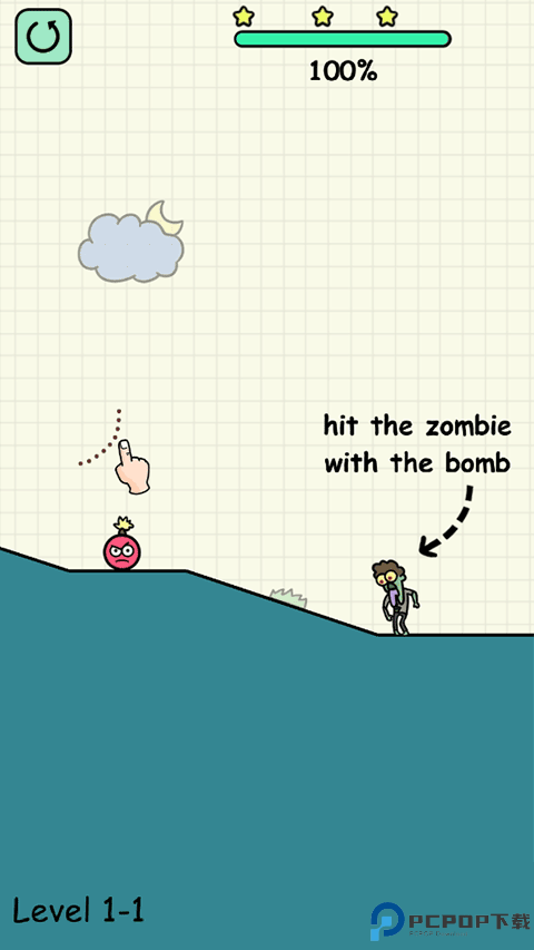 HelloZombie(你好僵尸)是一款趣味十足的休闲益智类手机游戏,玩家将通过画线的方式引导可爱的红色炸弹通过撞击引爆的方式消灭僵尸,每一个关卡玩家可用于画线的墨水有限,同时墨水的余量多少将直接影响到玩家的评级,用最少的墨水引导炸弹消灭僵尸是玩家取得高分的关键。HelloZombie提供了多达300个各具创意的关卡,不少关卡还添加了风扇等道具,玩家可利用各类布置在关卡中的元素,以更好地通过关卡,喜欢HelloZombie的话就快快下载游戏体验吧!