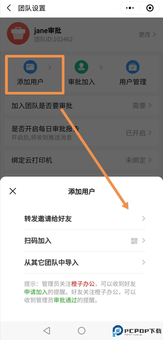 在团队设置中找到邀请好友:申请加入好友,点击邀请后,再点击申请加入,系统会发审批用户加入的消息给管理员。