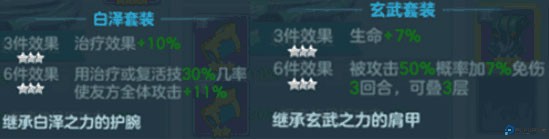 4、最后就是给女朋友配一套好看的衣服啦~再次推荐全体奶爸奶妈都适用的的白泽套,三件套可以提升19%的治疗效果,六件套还有几率提高20%攻击,当然也可以白泽三件套搭配玄武三件套增加点生命,做一个肉一点的奶妈。