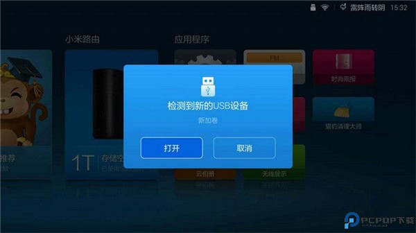 第三步:将下载好的全民k歌tv版apk,拷贝到U盘上,插到USB接口,会提示检测到新的USB设备打开
