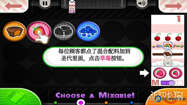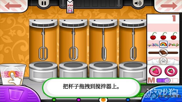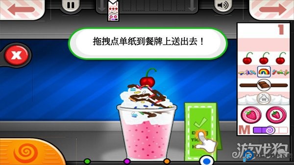 4、再去制作台制作产品,跟随提示制作冰淇淋,注意顾客要添加的小料等;